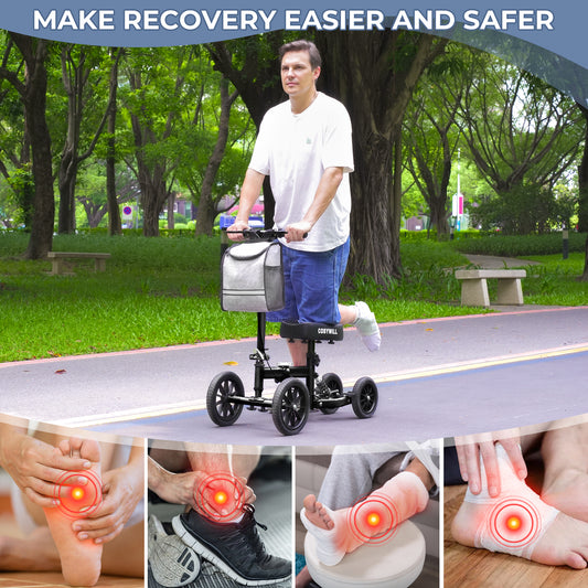 COSYWILL Knee Walker,All-Terrain Foldable Knee Scooter Walker Economical Knee Scooters Medical Scooter for Foot Injuries Crutches Alternative Black