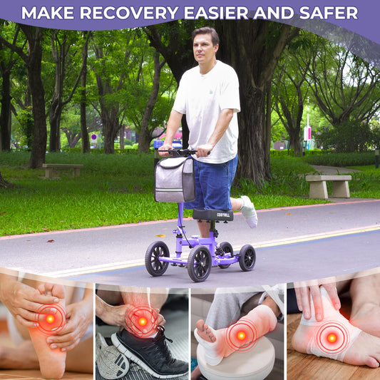 COSYWILL All Terrain Knee Scooter,Knee Walker Scooter for Foot Injuries,Adults Roller Scooter for with 10“ TPU Wheel,Compact Crutches Alternative,Purple