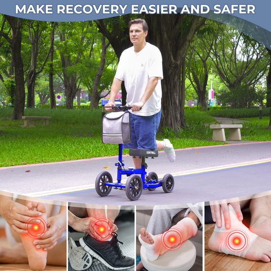 COSYWILL Knee Scooter,Economy Knee Walker with Dual Braking System,Foldable Scooter for Foot Injuries,Compact Crutches Alternative,Blue