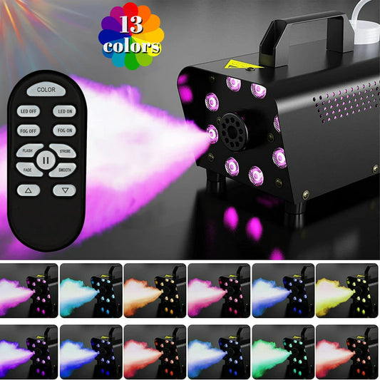 500W Smoke Machine 2000CFM Fog - 13 Colorful LED Lights - Wireless Remote Control - Ideal for Weddings, Halloween, Parties, and Stage Effects