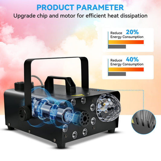600W Fog Machine with Disco Ball & 8 RGB LED Lights – 2000CFM and Remote Control for Parties, Weddings, Halloween & DJ Events