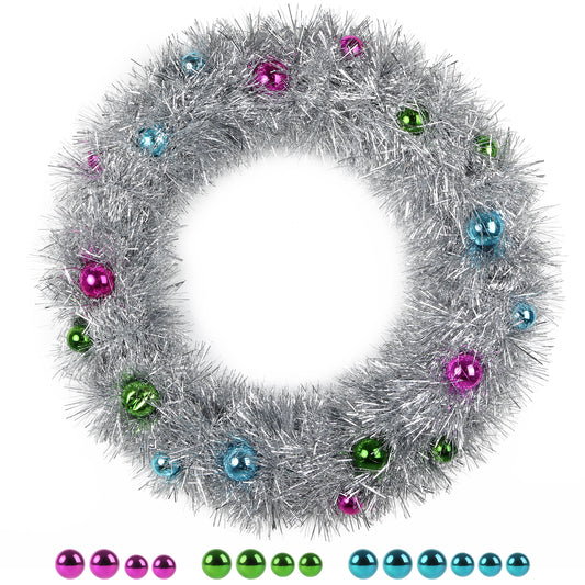 IZNEN Christmas Wreath,Tinsel Christmas Ball Wreath, Christmas Wreaths for front door,Outdoor Christmas Wreaths Weatherproof,Large 24" Wreaths with Shatterproof Ball Ornaments,Silver,Red,Green,Blue