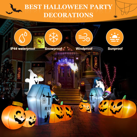 IZNEN 9.5ft Halloween Inflatable Pumpkins Outdoor Decor with Black Cat Tombstone and Spectre,Built-in LED Lights,for Halloween Party,Yard,Garden,Lawn