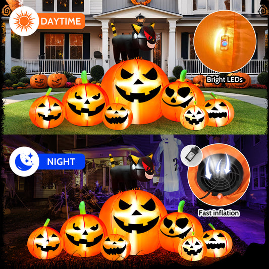 IZNEN 8.1ft Halloween Inflatable Blow Up Pumpkin Decoration,7 Glitter Pumpkins with Black Cat,Built-in LED Lights for Halloween Holiday,Yard,Garden,Lawn