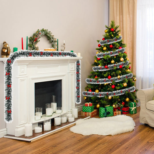 IZNEN Christmas Garland,Christmas Tinsel Garland with 38 Red Bows,Garland Christmas Decorations for Outdoor、Indoor、Holiday Party,Black & White