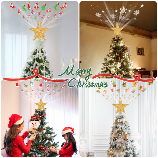 IZNEN Christmas Tree Topper Lighted,LED Christmas Tree Star Topper Rotating Lights,Christmas Tree Topper Projector with 4 Projection Modes for Indoor Christmas Tree Decor,Gold