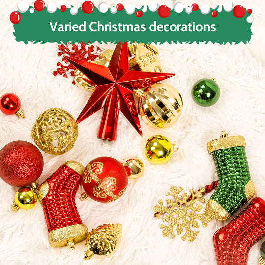 Yexmas 132PCS Christmas Ball Ornament Set, Shatterproof Hanging Christmas Tree Decorations for Holiday Decor Party