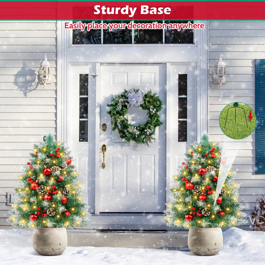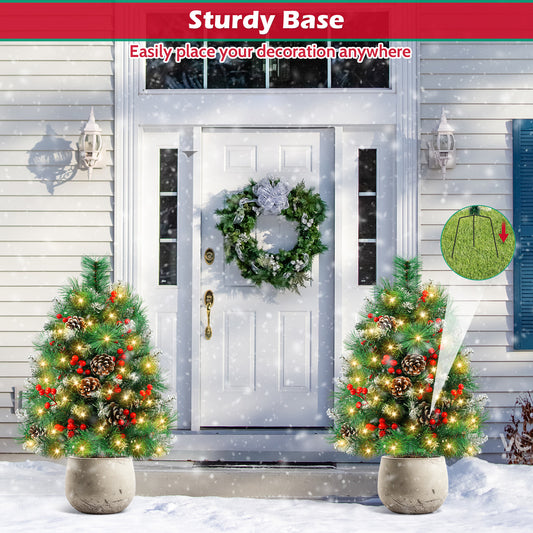 Yexmas 2PCS Small Outdoor Christmas Trees with LED Lights,30" Artificial Xmas Decora for Porch,Yard,Pathway,Garden,PVC+Flocking Pine Needles