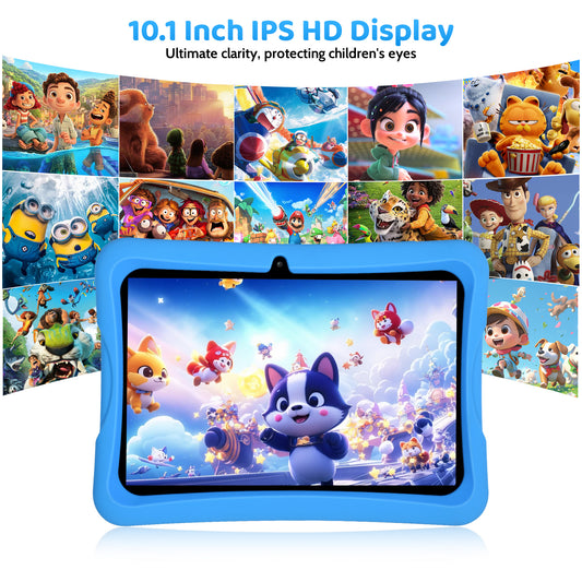TEAYINGDE Kids Tablet 10.1" Android 13 Tablet with WiFi 64GB Tablet for Ages 3–8 Kids Tablet with Silicone Case Google Play Parental Control APP (Blue)