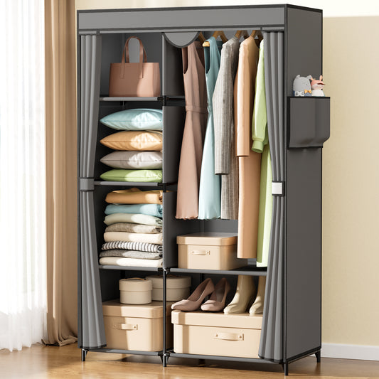YOUPINS Portable Clothes Organizer with Hanging Rod, Portable Closet Non-Woven Fabric,Black