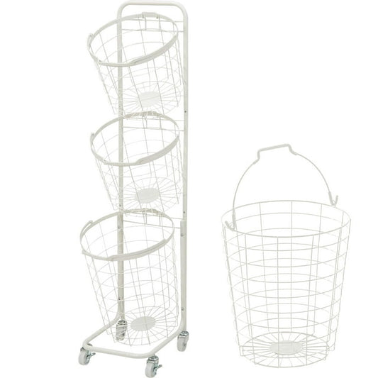 YOUPINS Removable 3 Tier Metal Rolling Laundry Basket Cart,Large Capacity Wire Basket Laundry Hamper with Wheels, Laundry Butler for Bathroom Bedroom Laundry Room