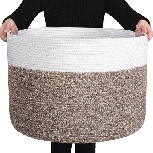 YOUPINS XXXL Cotton Rope Basket (23.6"x15.7"),100% Cotton,Extra Large Woven Storage Basket,Blanket Basket Living Room,Toy Storage Basket,Pillow Basket,Laundry Basket,Round Basket,Baby Hamper
