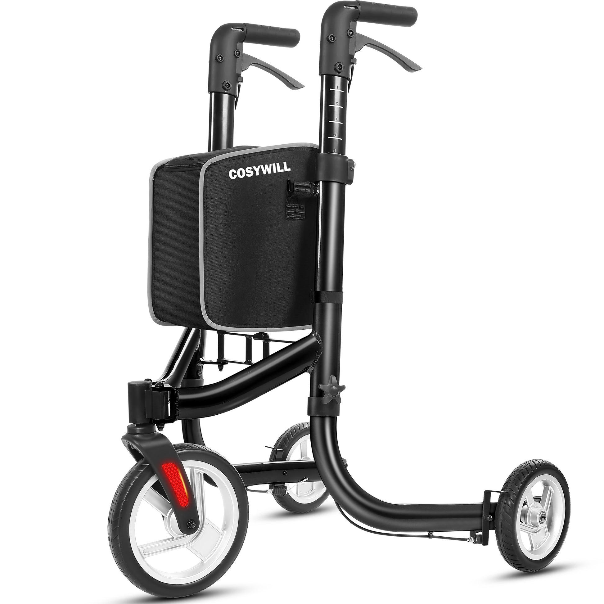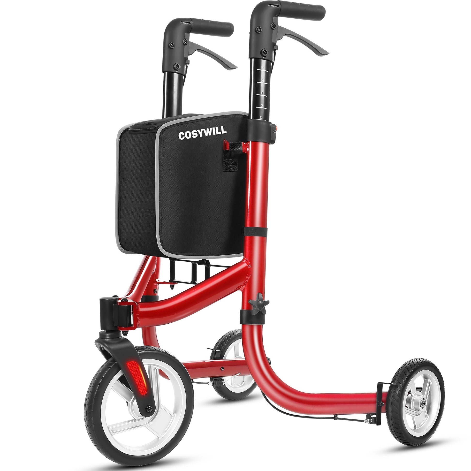 COSYWILL 3 Wheel Rollator Walkers for Seniors,Ultra Lightweight Foldable Walker for Elderly with Storage Bag, 10" Three Wheel Modern Mobility Walking Aid Aluminum,Red