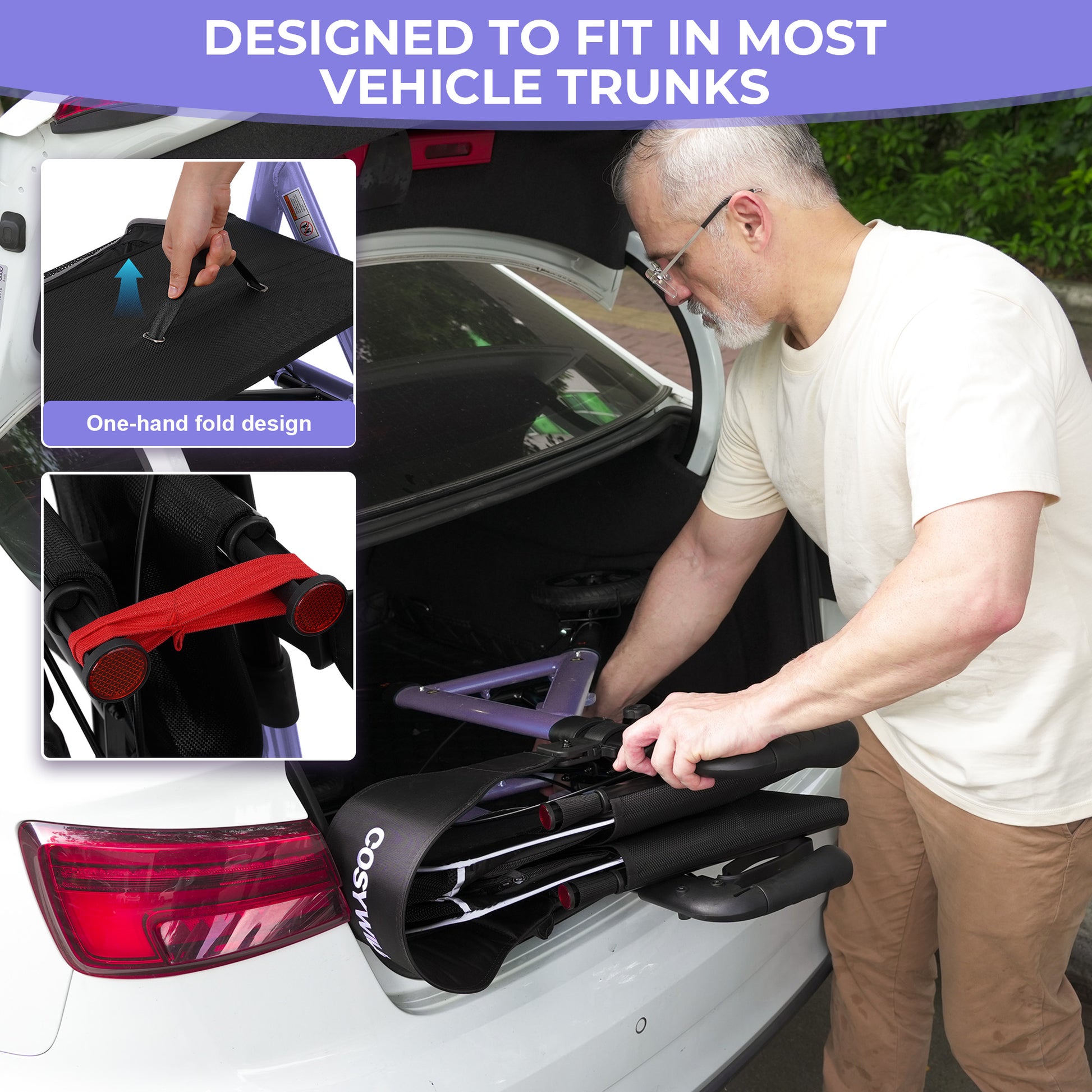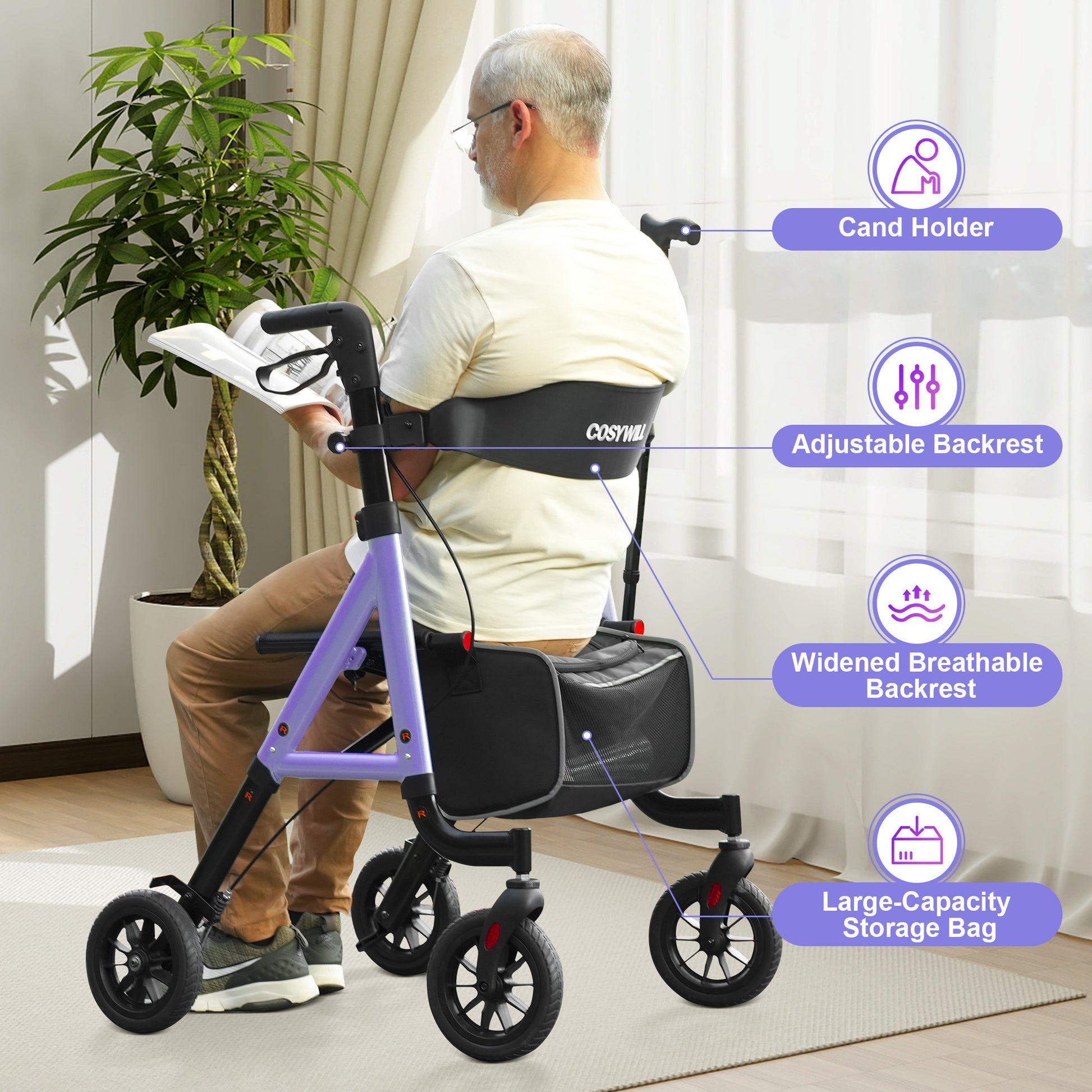 COSYWILL Aluminum Rollator Walker with Seat,Height Adjustable Mobility Walker with 8" Wheels,350 lb Weight Capacity,Purple
