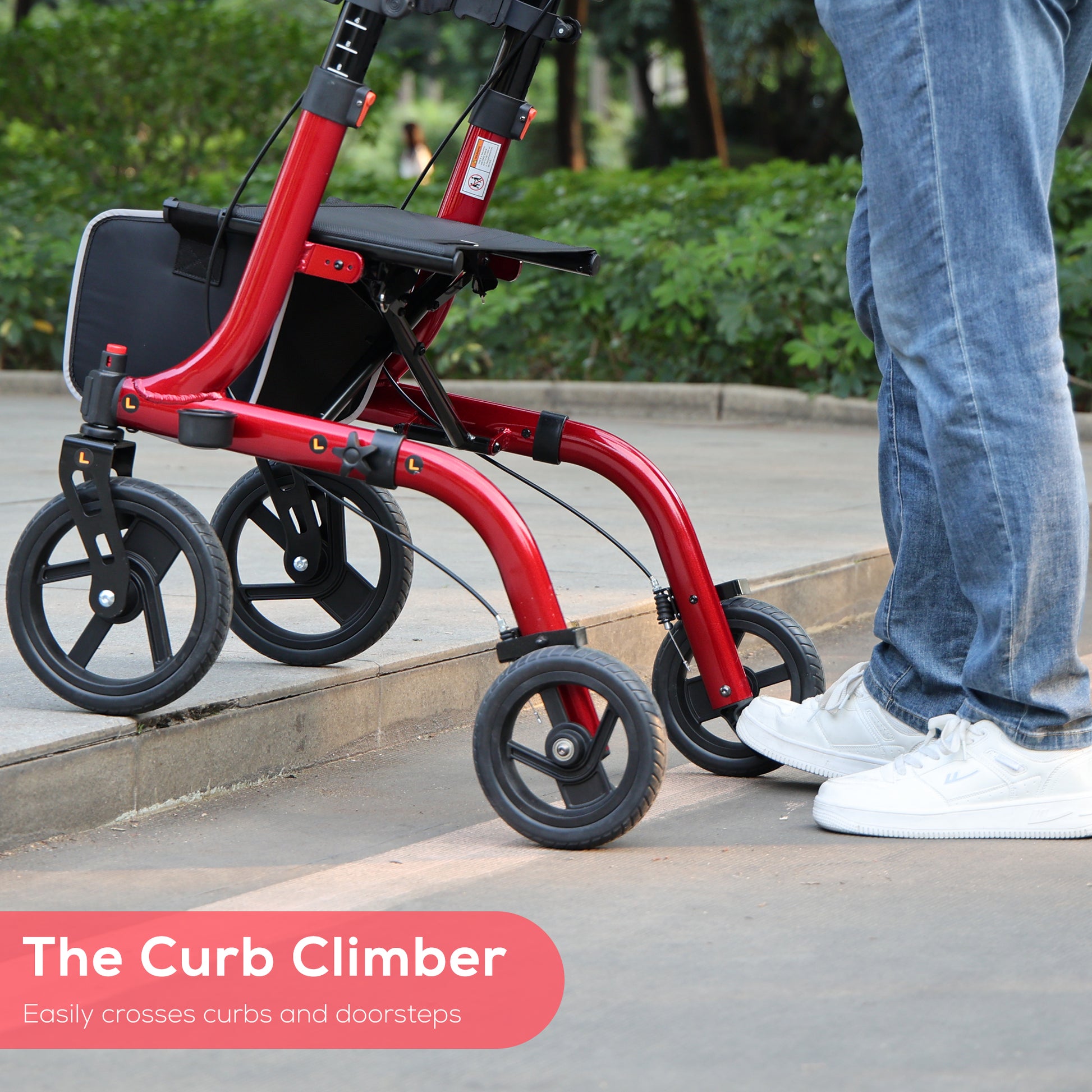 COSYWILL Rollator Walkers with Seat for Seniors, Foldable 10" Big Wheels All Terrain Rolling Walker,Adjustable Handles, Mobility Walker for Seniors,Light Red