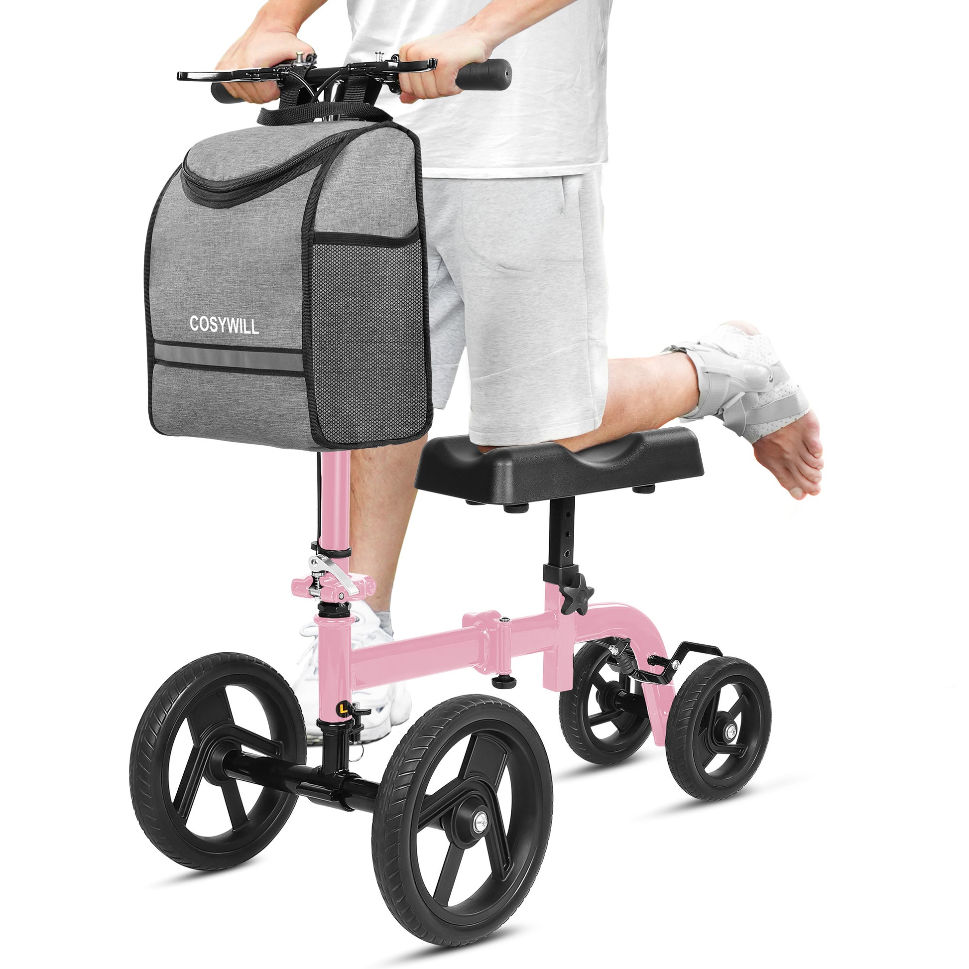 COSYWILL Steerable Knee Scooter,Knee Walker Scooter for Adults with 10" Front Wheels,Foldable Knee Scooter for Foot Surgery Crutches Alternative,Pink