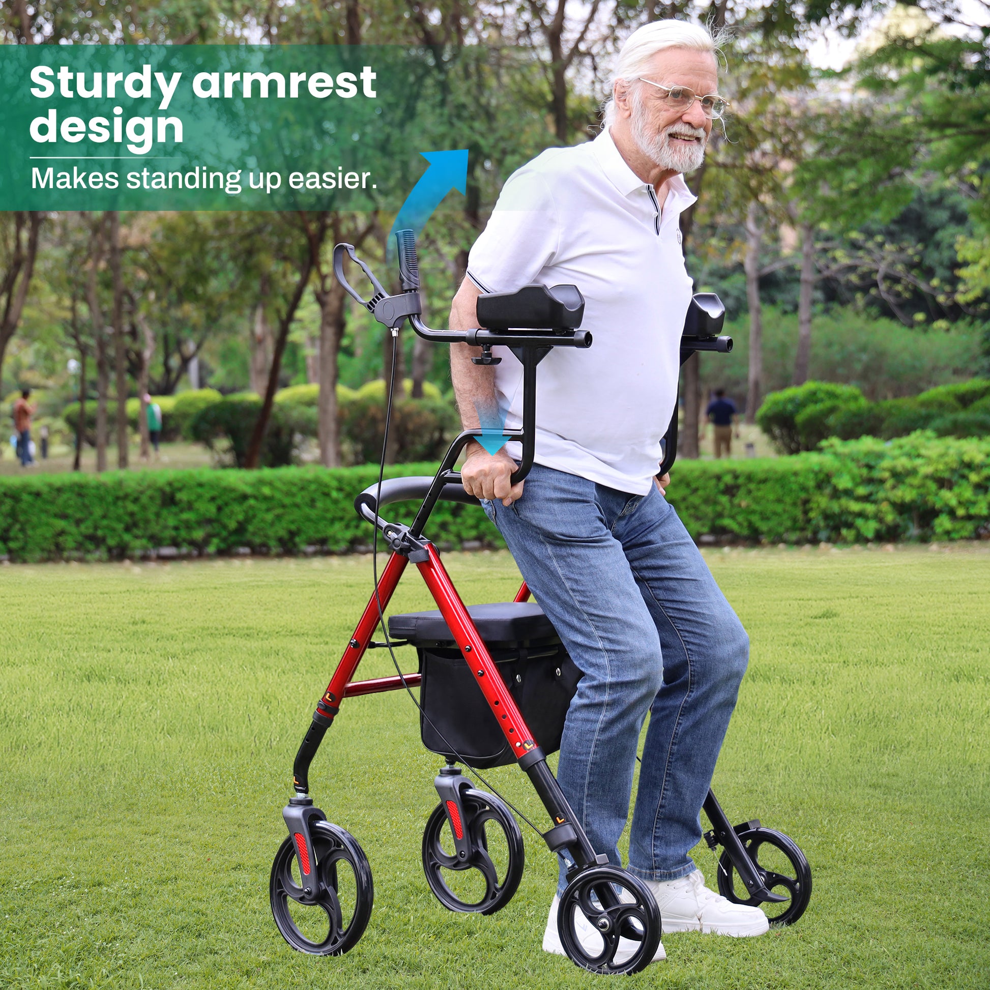 - 【User-friendly Armrest】:Designed with both padded straight handles and curved handles, the padded straight handles are length-adjustable to help users walk upright, keep their eyes forward, and boost confidence and vitality; the curved handles provide stable support and leverage when sitting down or standing up, greatly enhancing safety and convenience.