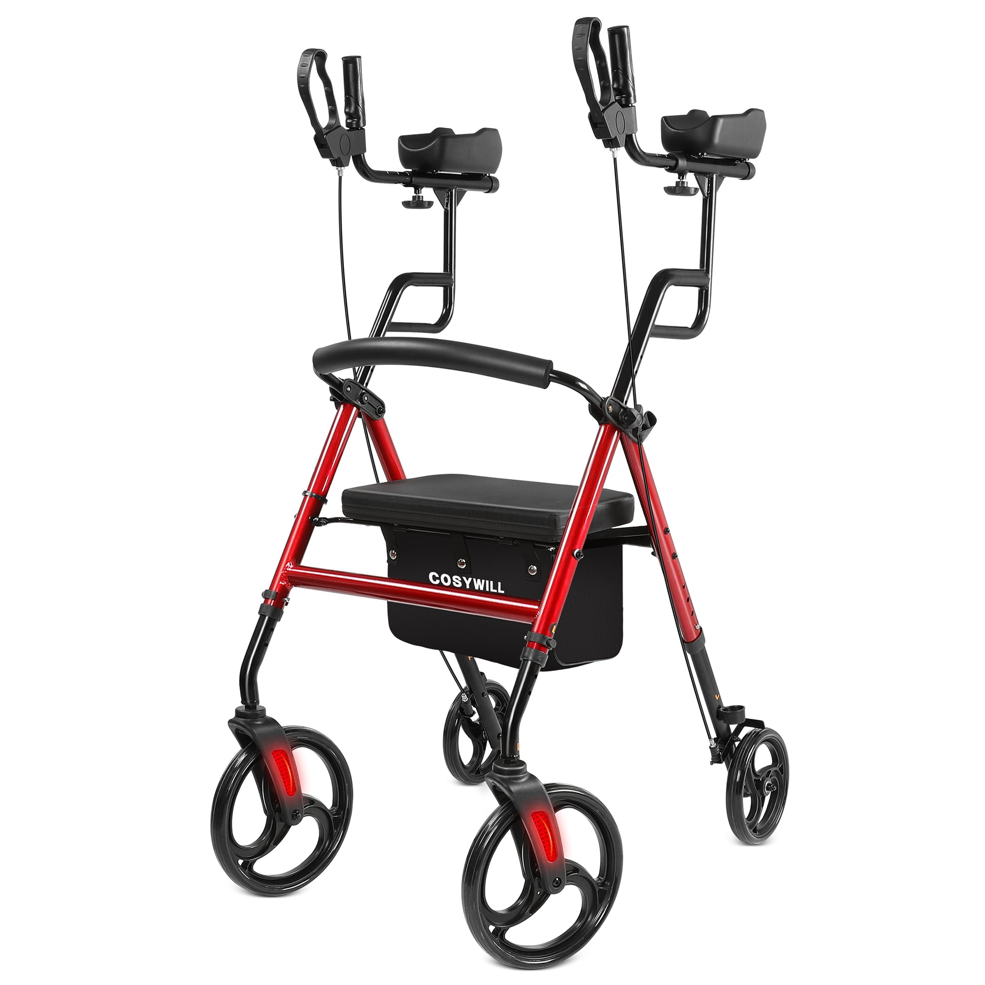 COSYWILL Upright Rollator Walker,Stand Up Walkers for Seniors and Adults with Backrest Seat,Lightweight and Folding Design,Red