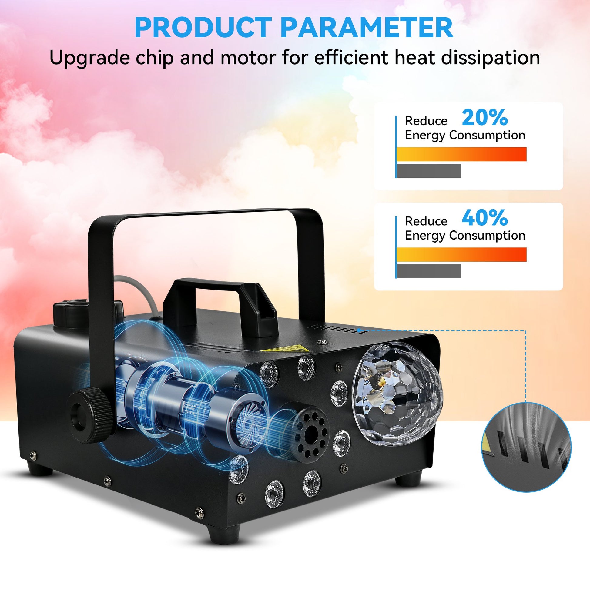 - Upgrade your events with this versatile and easy-to-use 500W Fog Machine with Disco Ball Lights, and create unforgettable memories with its unique lighting effects.