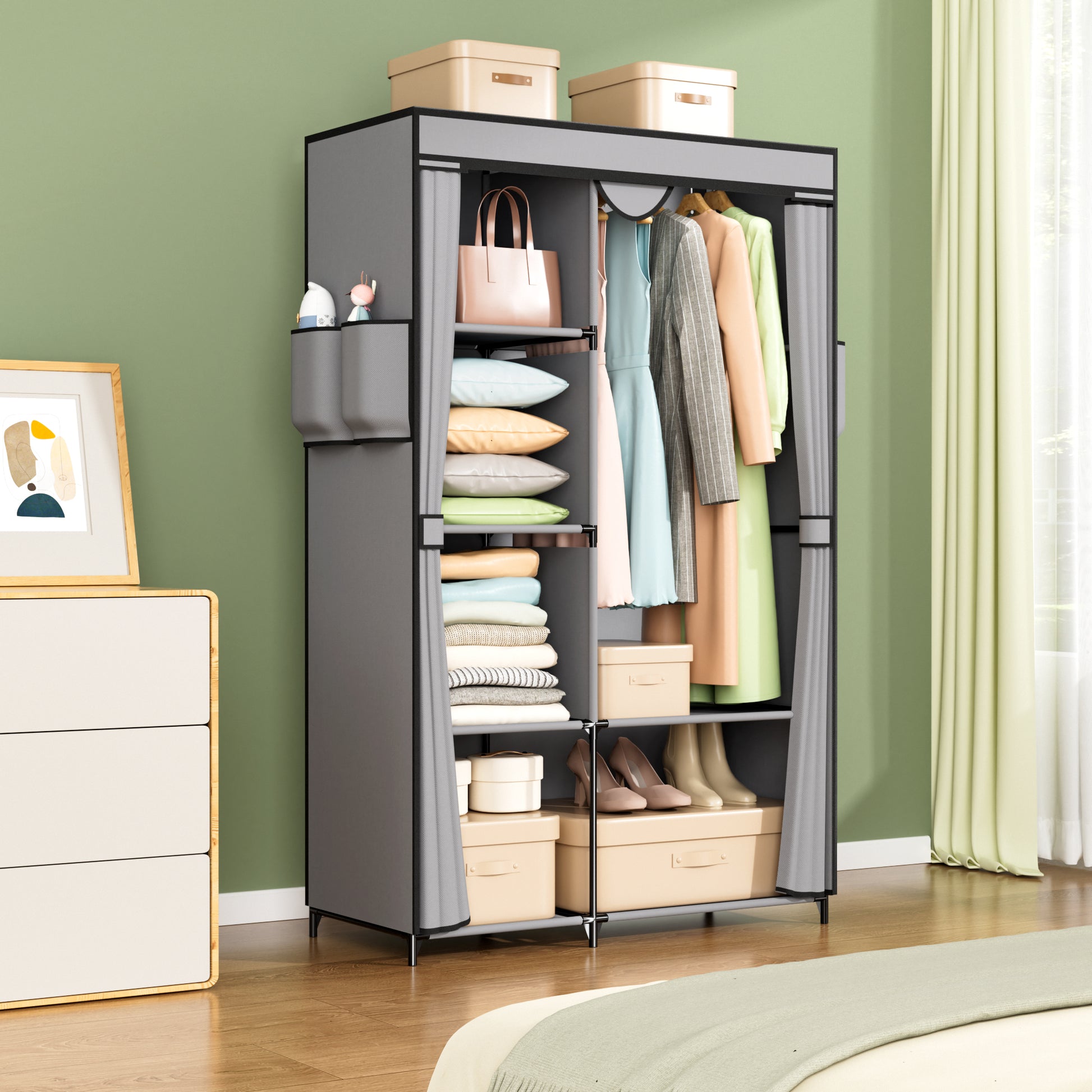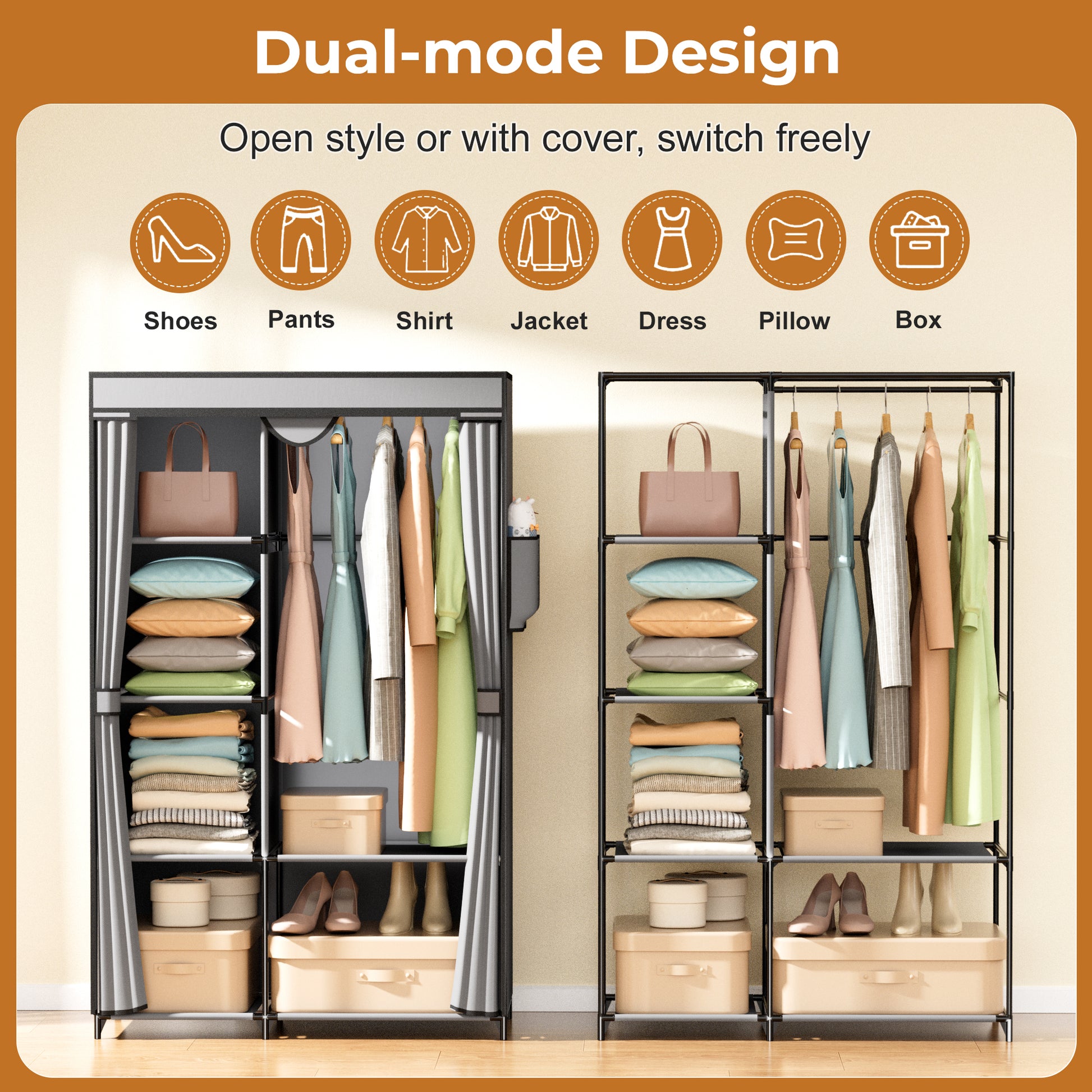 Large Capacity & Versatile: Includes hanging area, storage shelves, and foldable compartments. Hanging area holds dresses, coats, and shirts; storage shelves hold folded clothes and miscellaneous items; foldable compartment fits T-shirts, pants, or small accessories, maximizing space utilization.