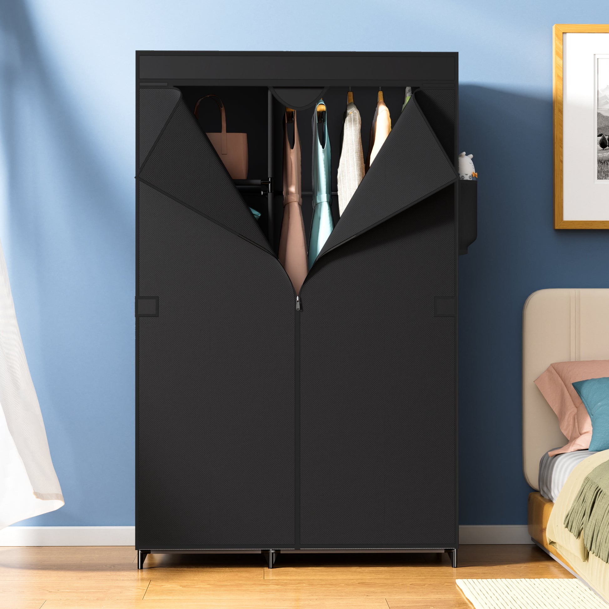 YOUPINS Portable Clothes Organizer with Hanging Rod, Portable Closet Non-Woven Fabric,Black