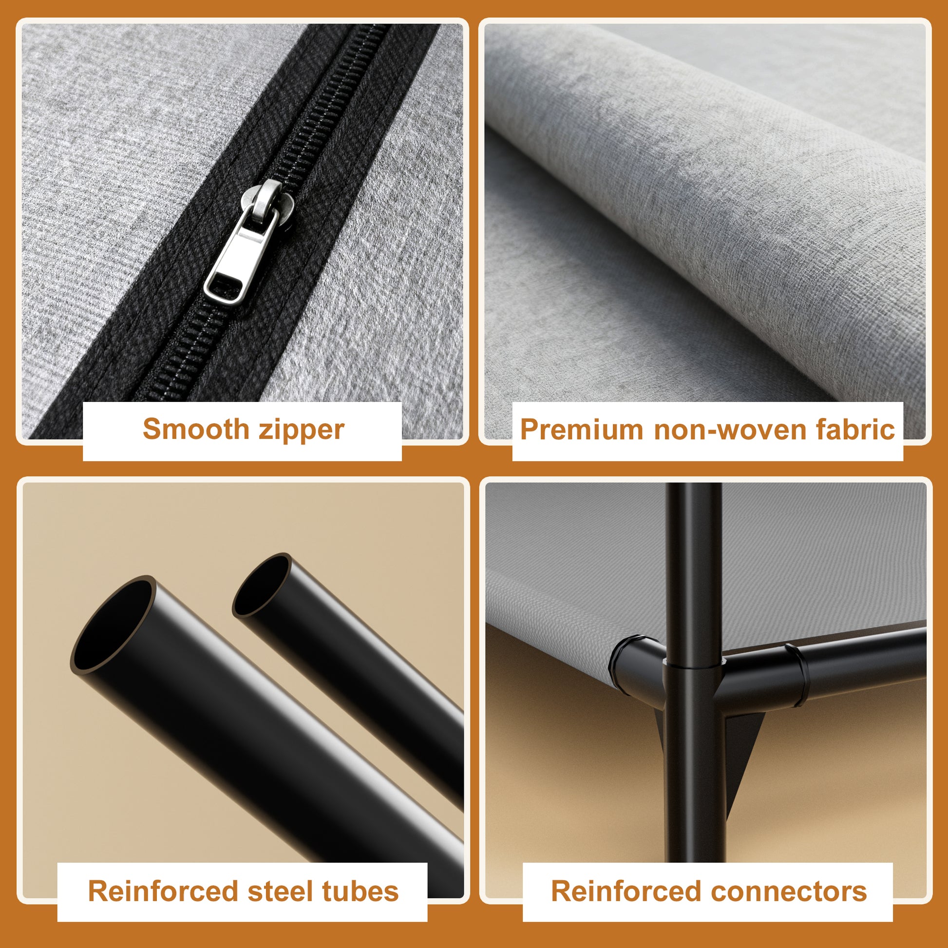 Premium Materials: High-quality non-woven fabric is durable and tear-resistant. Zipper closure keeps clothes dust-free and organized.